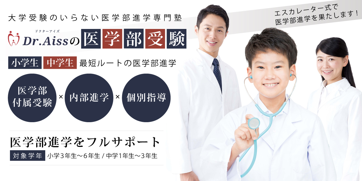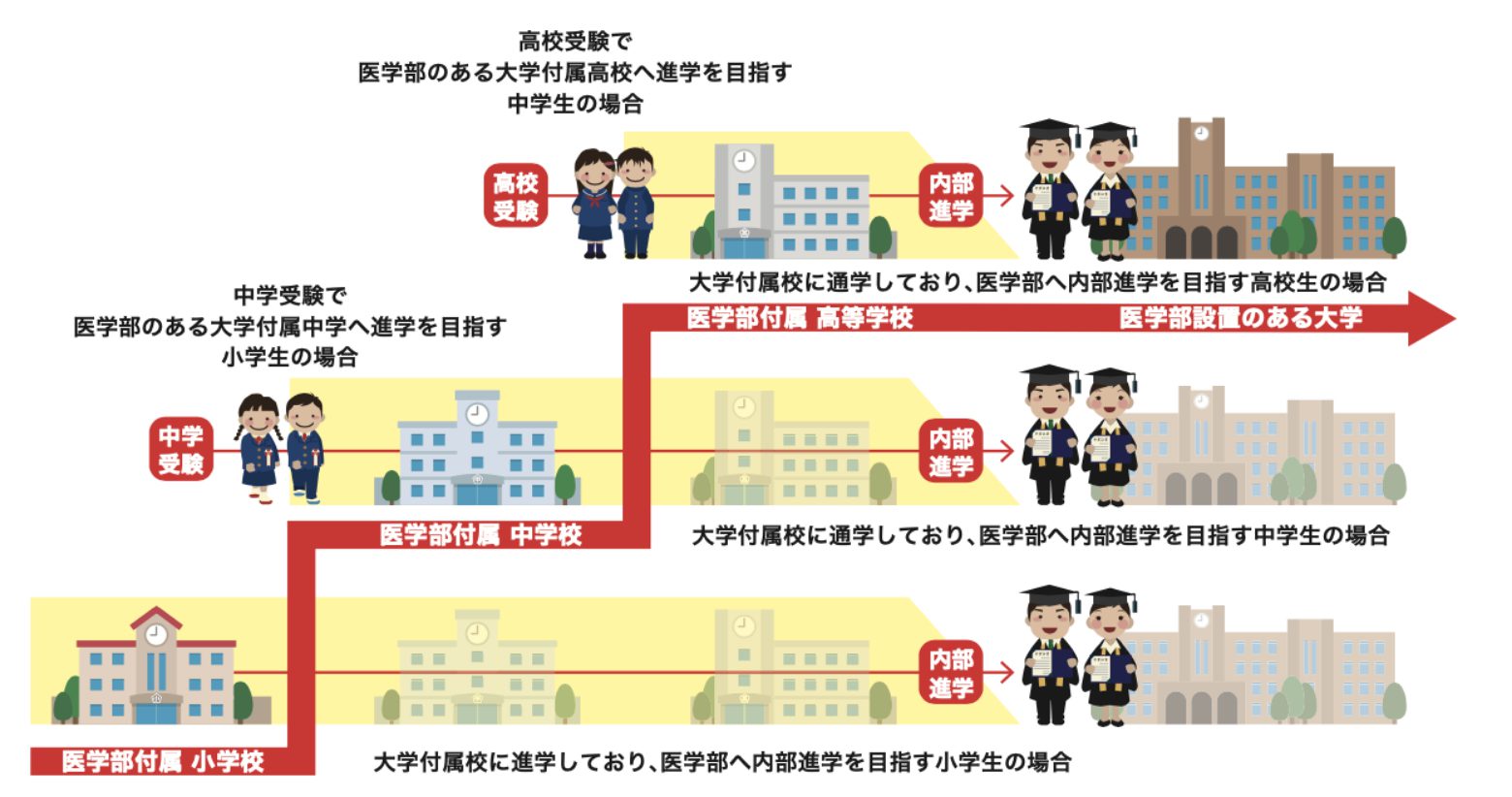 進学校への高校受験を経て、予備校に通い、大学受験で医学部を目指すルート。